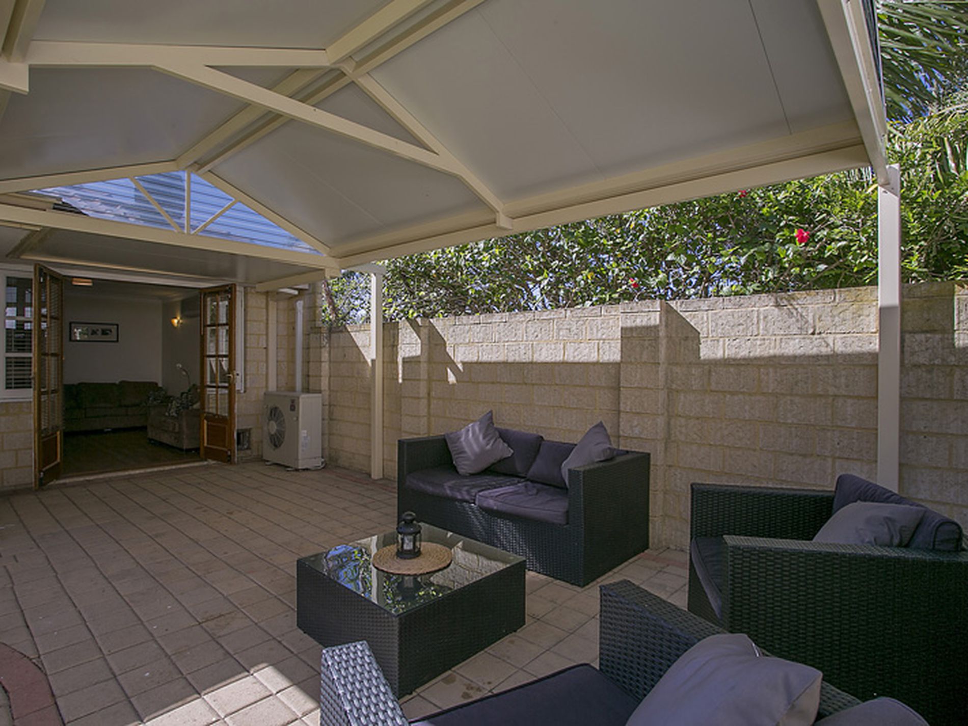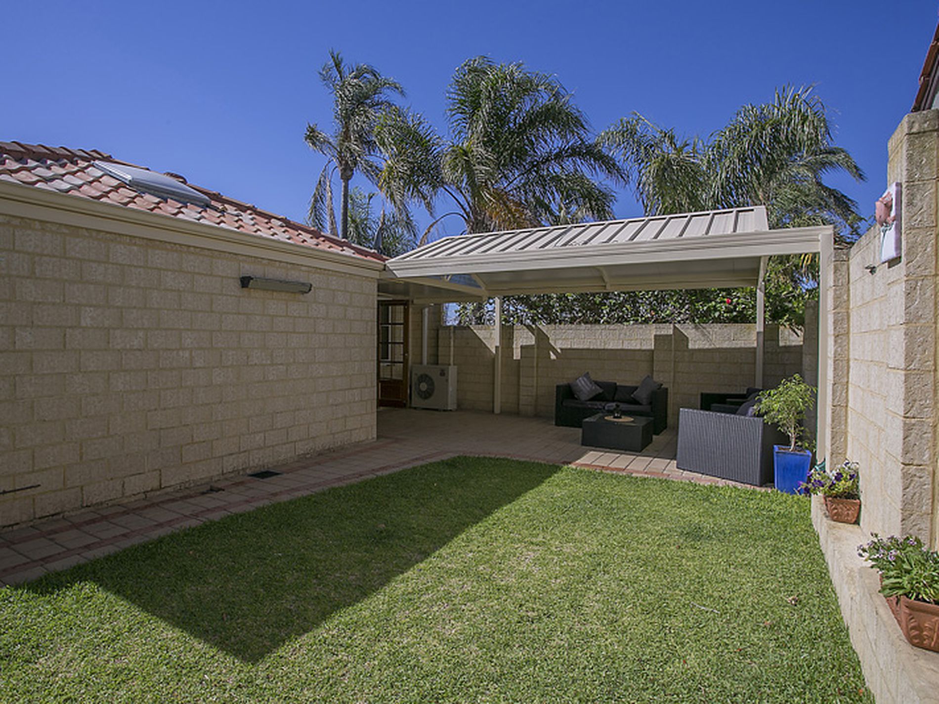 * Rear covered entertaining area & adjacent lawn outdoor area